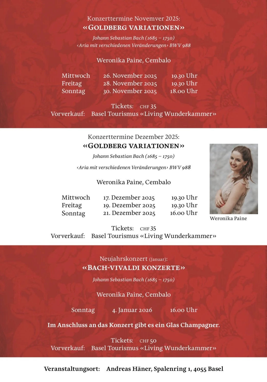 In the coming weeks, I am pleased to present several harpsichord recitals at the stunning venue in Basel - the Living Wunderkammer. I look forward to sharing with you the masterworks of Johann Sebastian Bach, which have been a source of inspiration for years.
